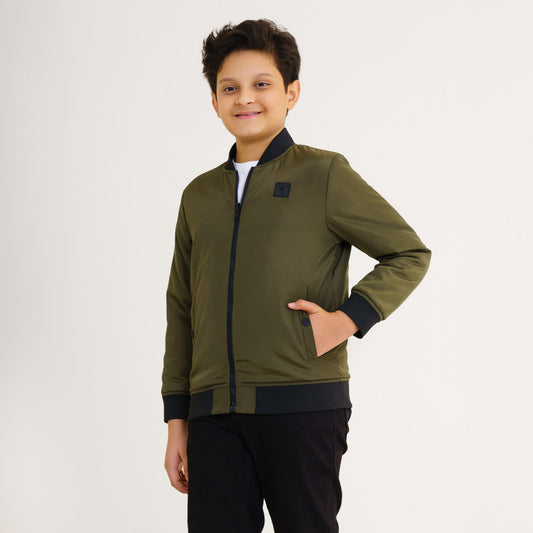 Boys Olive Reversible Bomber Jacket