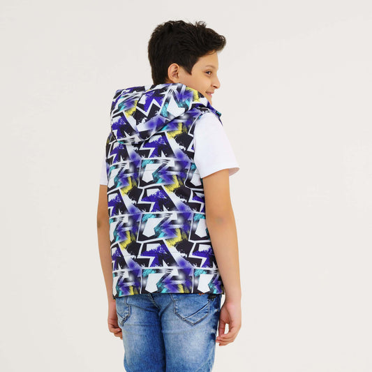 Boys Blue Printed Husky Jacket