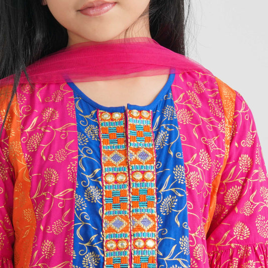 Girl’s Viscose & Georgette Three Piece Set