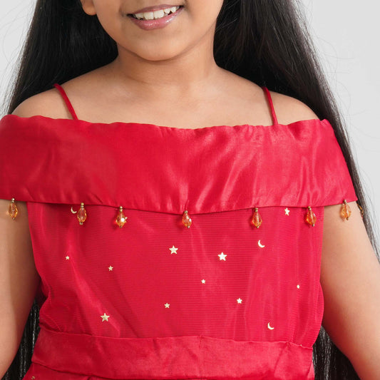 Girl’s Red Off-Shoulder Frock
