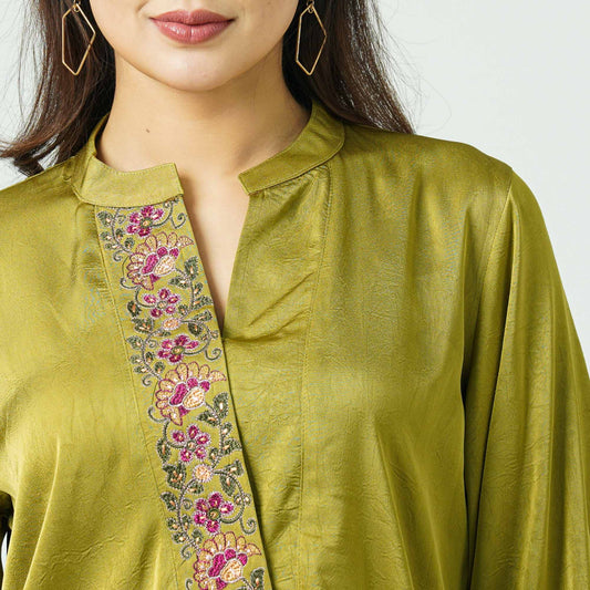Women Olive Ethnic Two Piece Set
