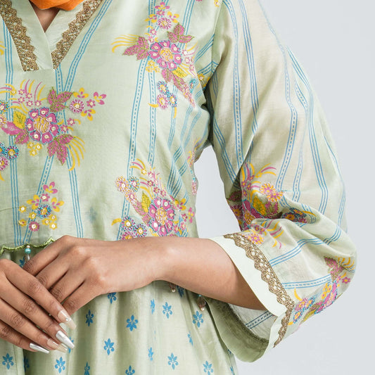 Women Green Screen Print Gown