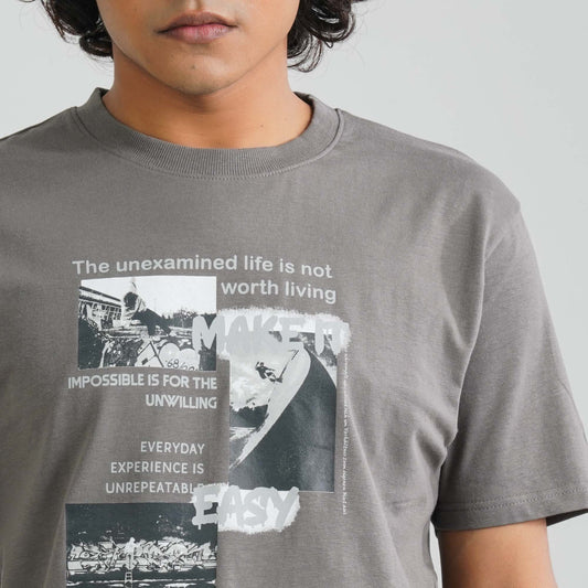 Men's Grey Cotton Oversized T-Shirt