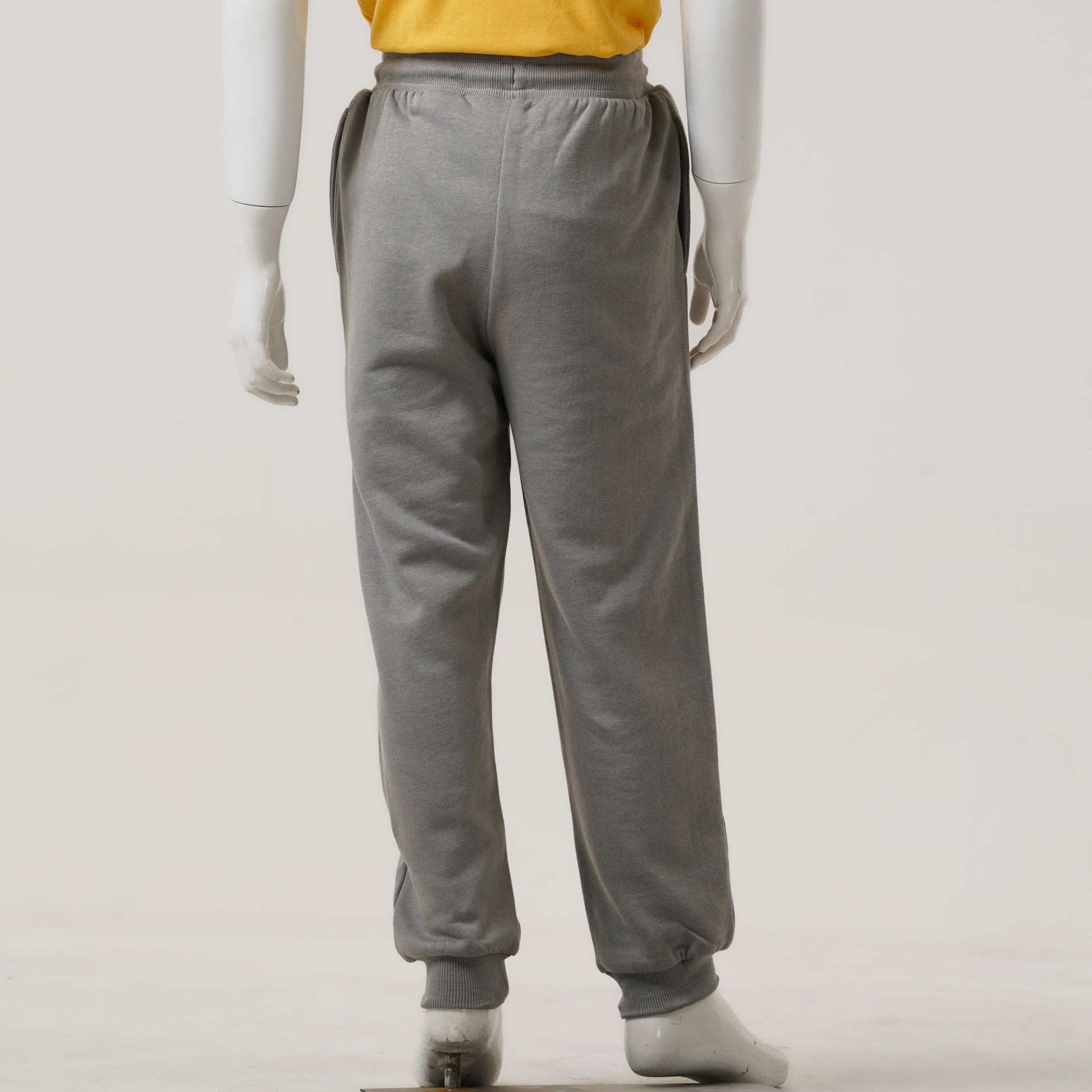 Adorable baby boys’ joggers in gray, crafted from 100% cotton for soft and comfortable wear. Features a small dinosaur print on one leg, adding a playful touch. Perfect for everyday playtime or casual outings.
