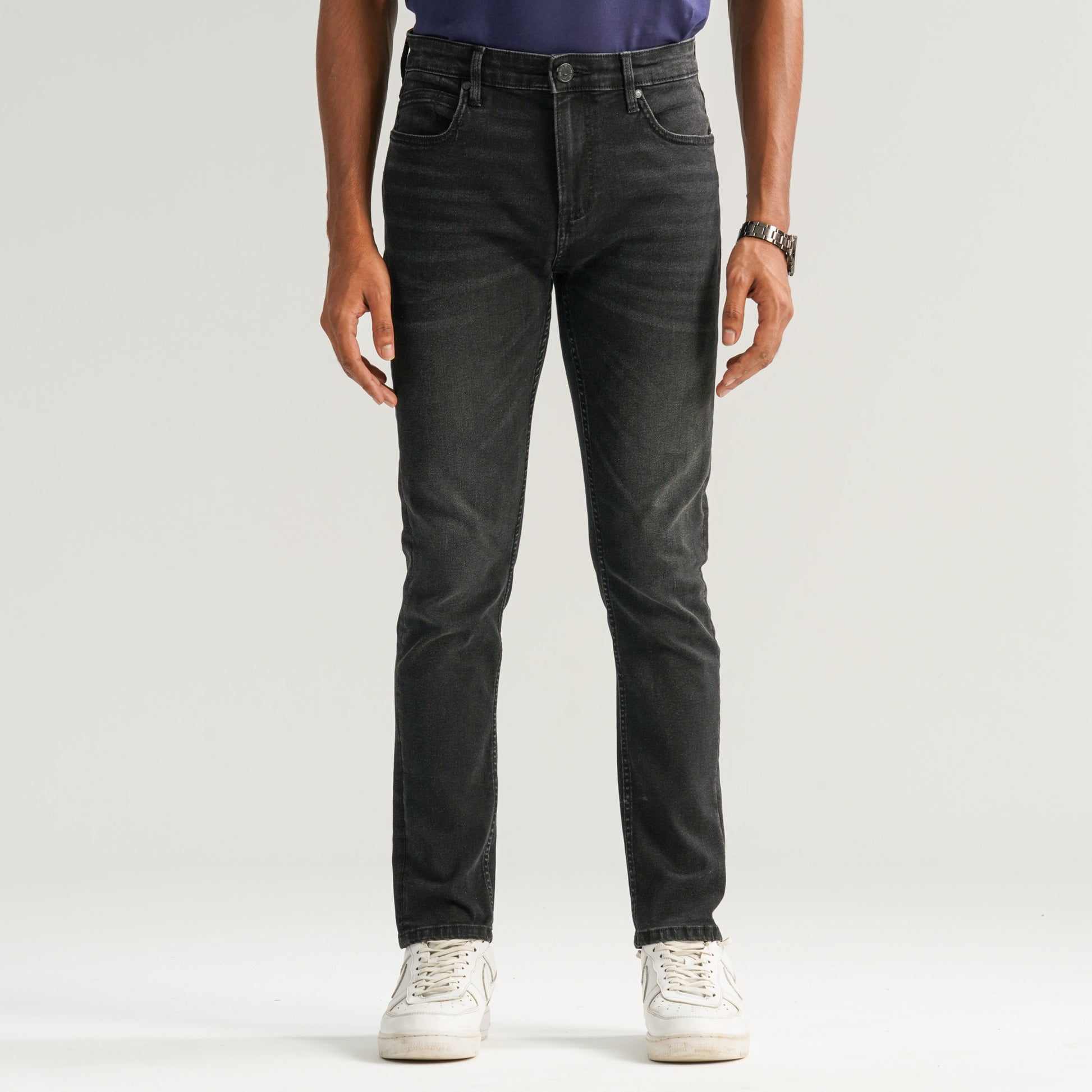 Men’s denim pant in classic black, made from a premium blend of cotton, polyester, viscose, and spandex for lasting comfort and flexibility. Features PP wash, whisker detailing, and light abrasion for a stylish worn-in finish. The embroidered back pocket adds a subtle touch of sophistication, making it ideal for casual or semi-formal wear.