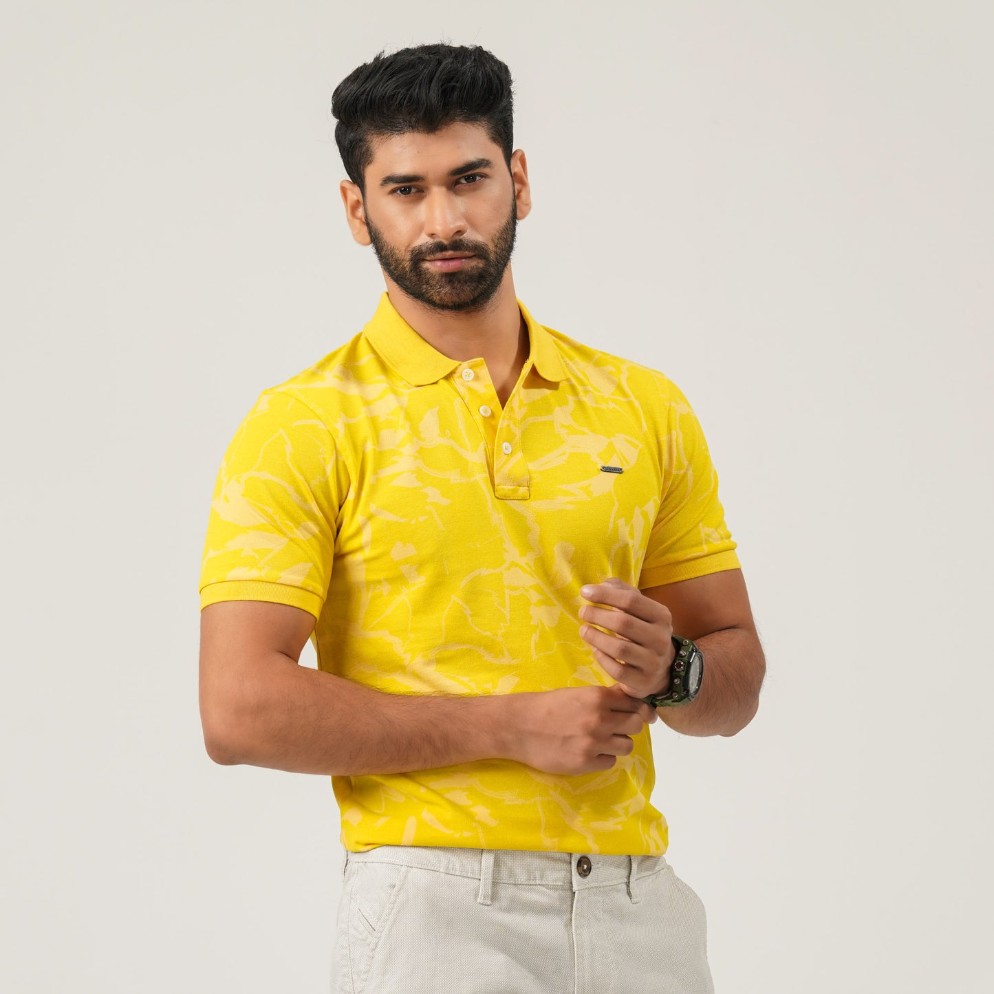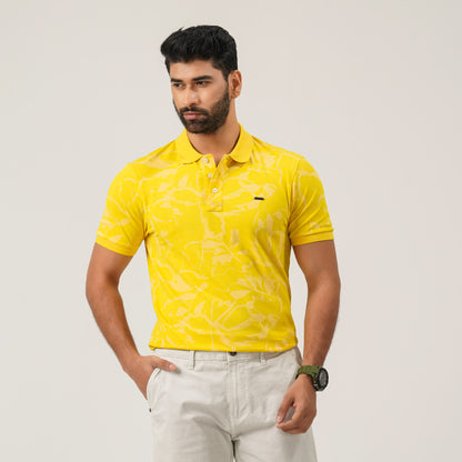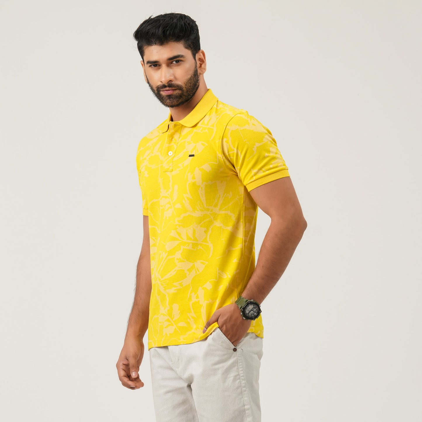 This slim fit polo shirt is made from a soft and durable blend of 95% cotton and 5% elastane (220 GSM). It features an all-over print design and a metal badge at the chest, combining comfort with a stylish edge. The breathable fabric and tailored fit make it perfect for smart-casual summer wear.