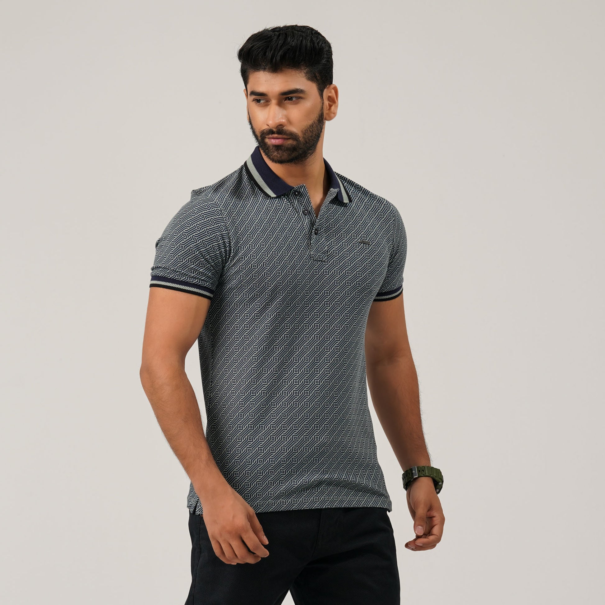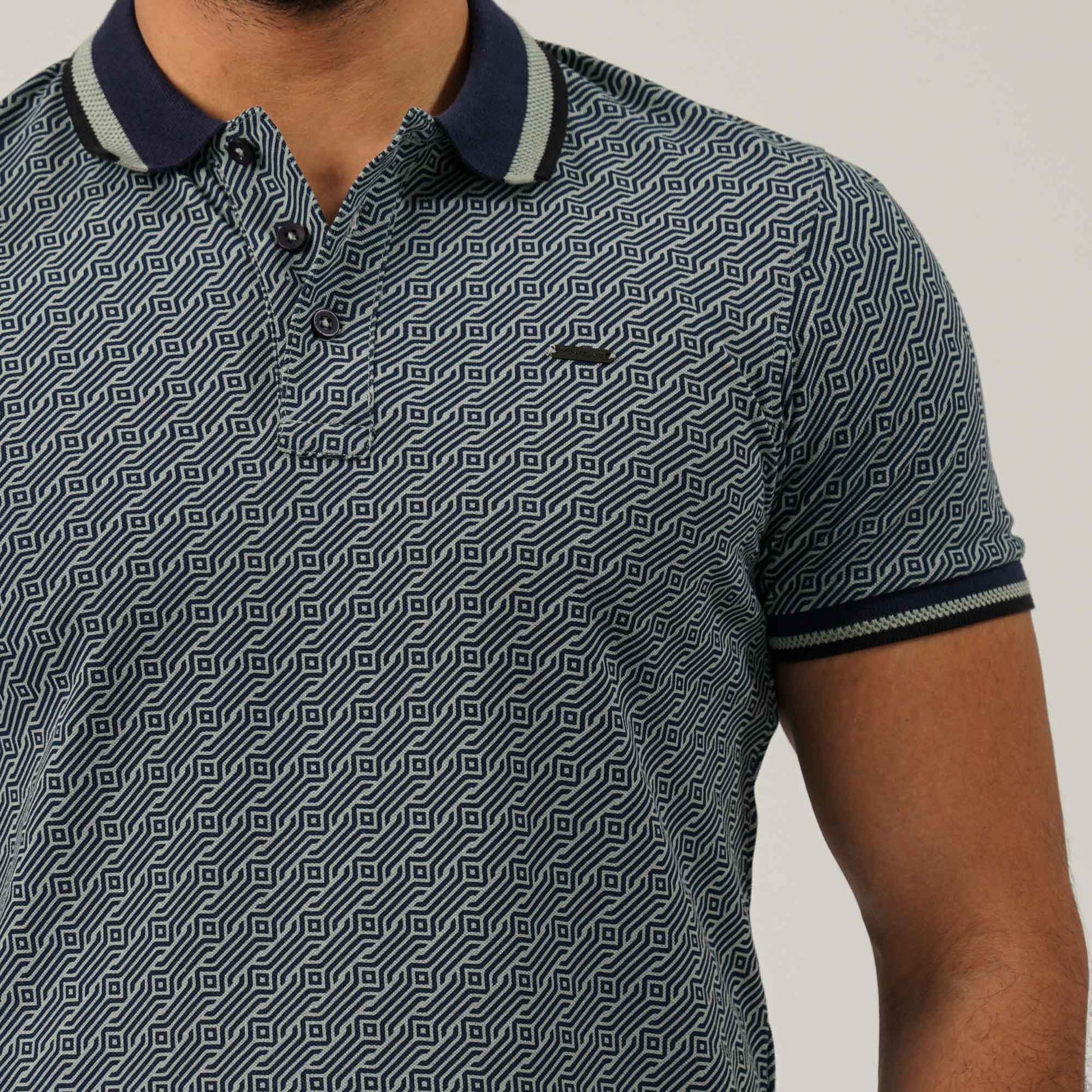 Crafted from a premium blend of 95% cotton and 5% elastane (220 GSM), this slim fit polo shirt ensures both comfort and flexibility. It features an all-over print, a jacquard collar, and a metal badge at the chest for a refined touch. The high-quality fabric and structured fit make it an ideal choice for modern casual styling.