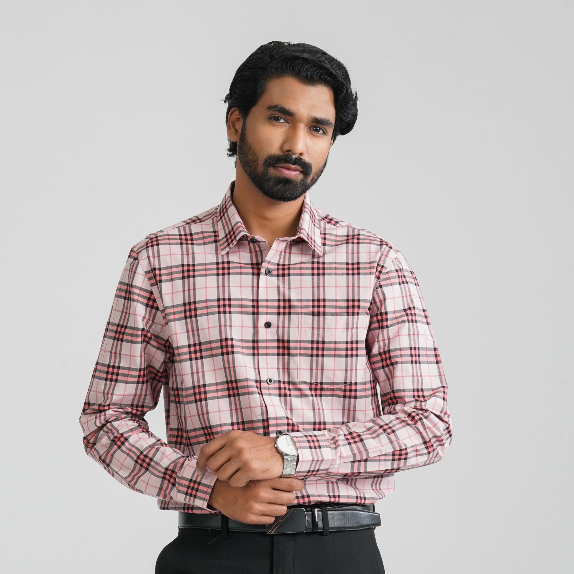 This men’s pink check semi-formal shirt is crafted from cotton fabric, ensuring breathable comfort throughout the day. The classic check pattern adds a smart and stylish touch suitable for both office and casual occasions. Designed in a regular fit for comfortable movement and a polished appearance. Perfect to pair with chinos or denim for a versatile everyday look.