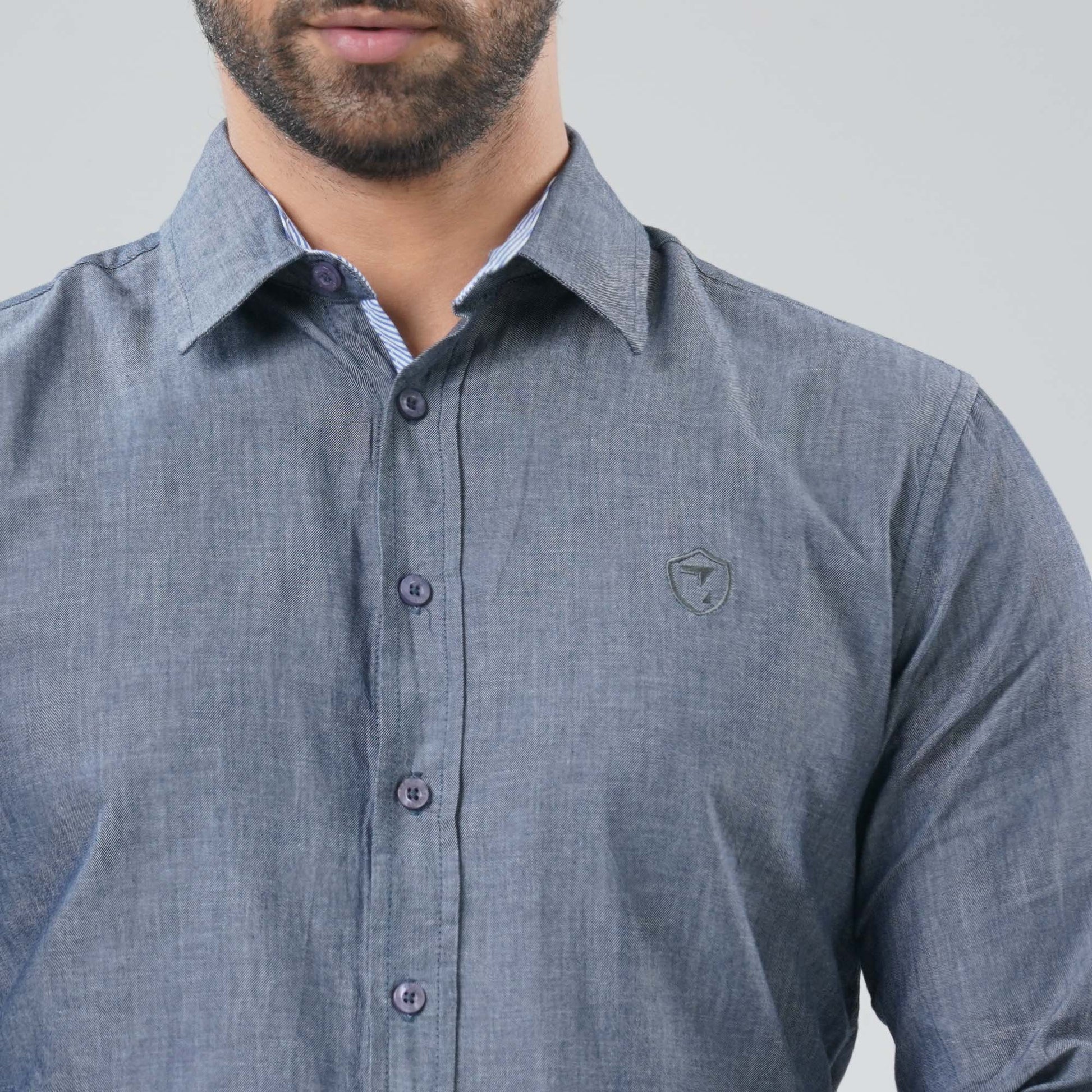Stylish men’s shirt in grey, crafted from 100% cotton for breathable comfort. Designed in a slim-fit cut with a contrast fabric detail for a modern edge. Finished with a placement brand logo that adds a touch of sophistication. Perfect for casual and semi-formal wear.