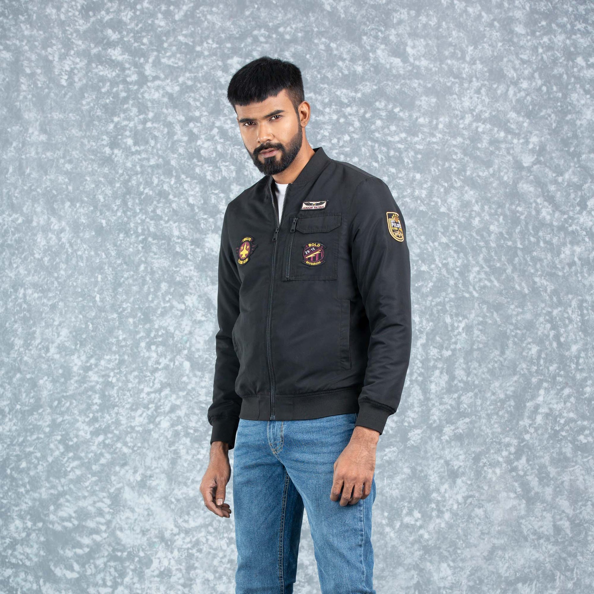 MENS BOMBER- BLACK crafted from Memory Fabric technology, providing a lightweight and breathable experience.
