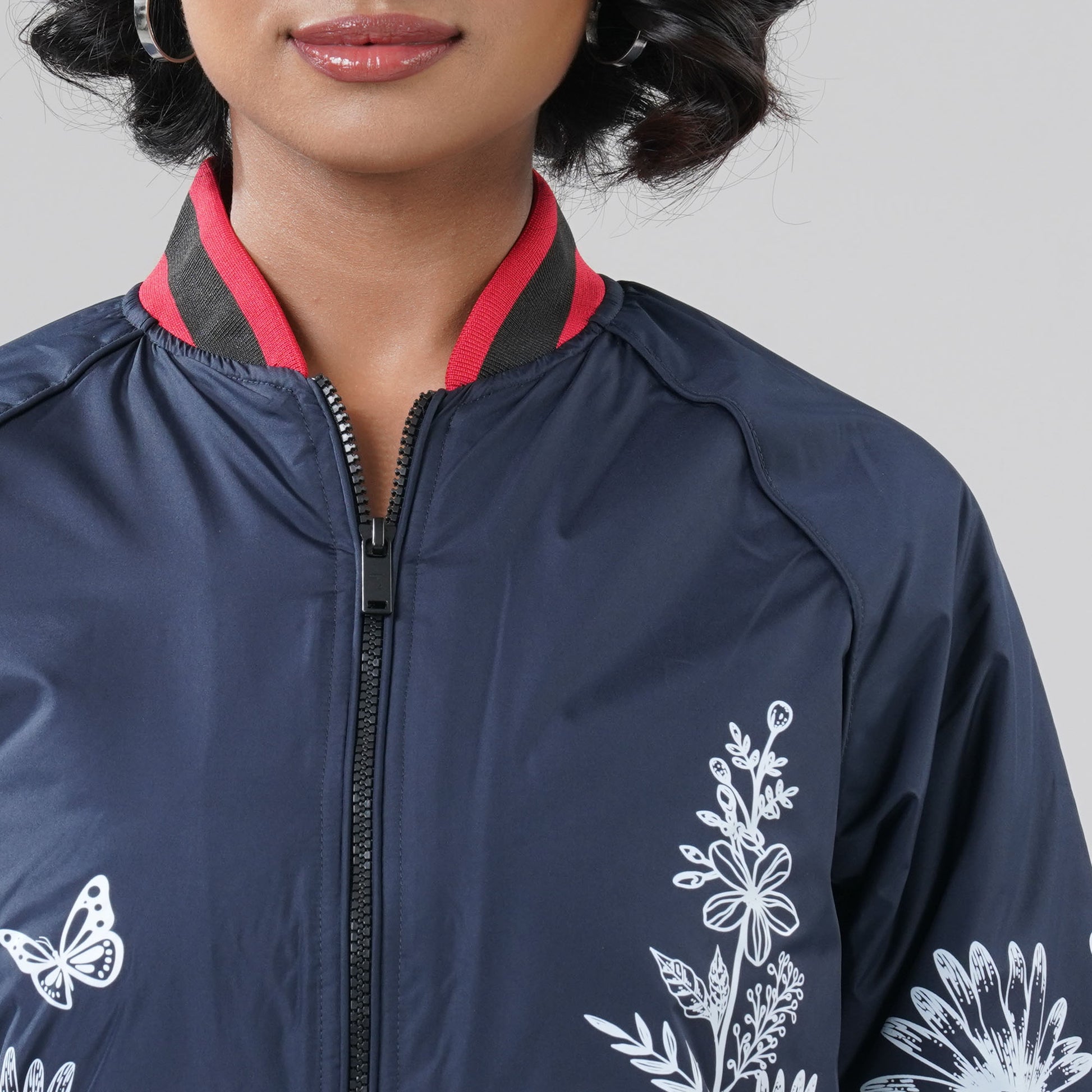 Add a sporty touch to her winter style with this womens blue bomber jacket, crafted from 100% polyester for durability and comfort. Designed in a regular fit, it features tipping rib details on the neck, sleeves, and bottom for a stylish finish. Perfect for layering on cool winter days.