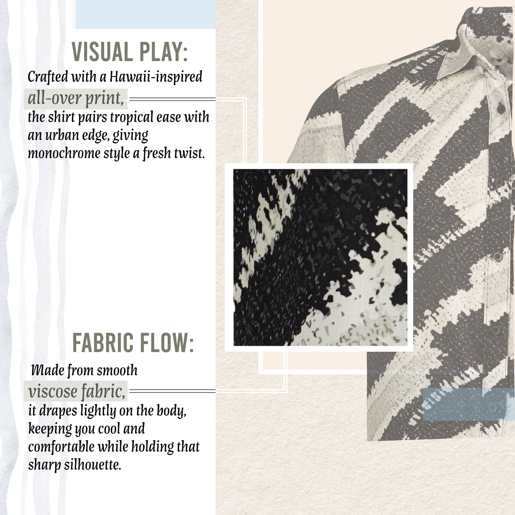 Crafted from smooth viscose fabric, this casual shirt features an all-over black pattern for a bold, vibrant look. Ideal for relaxed gatherings or weekend outings.