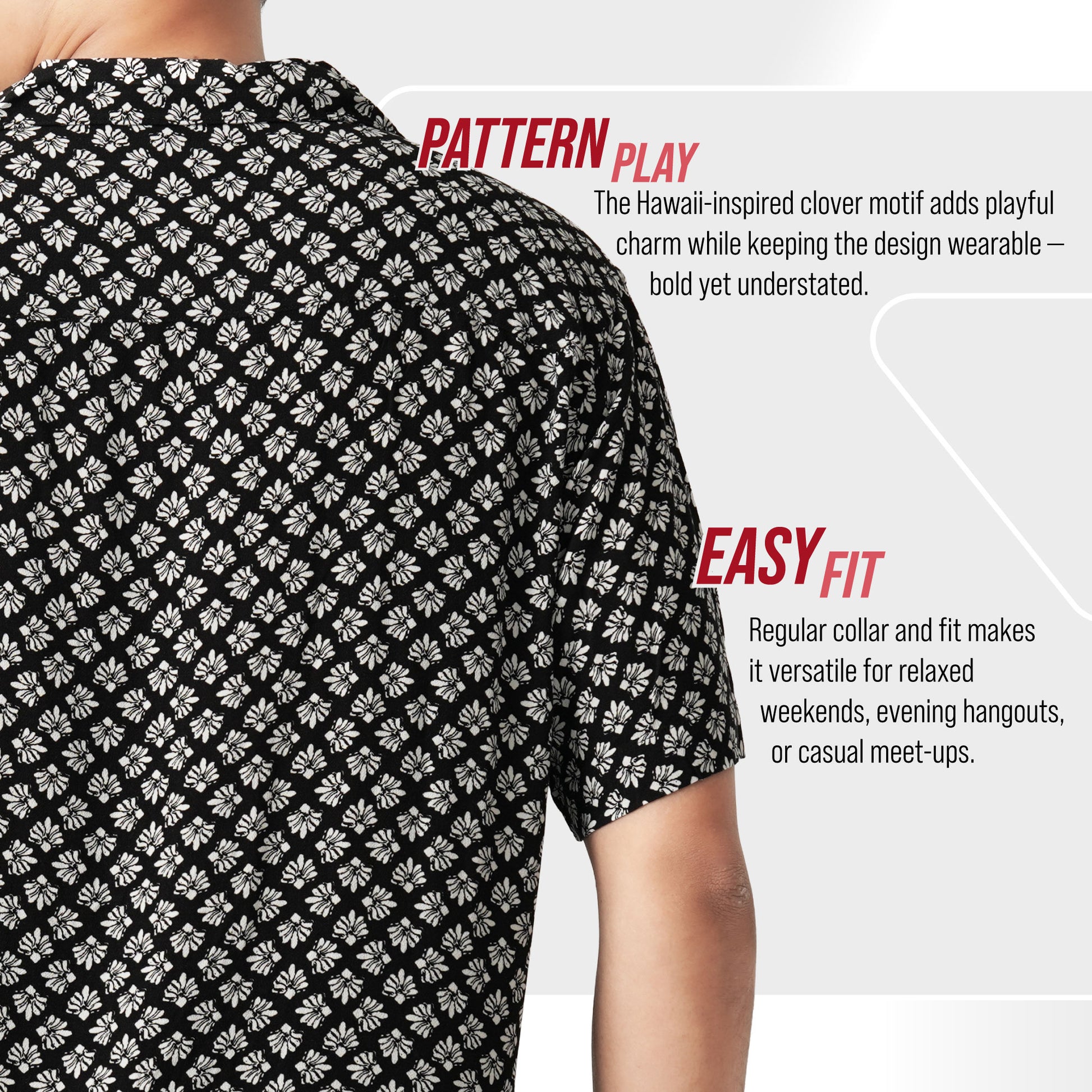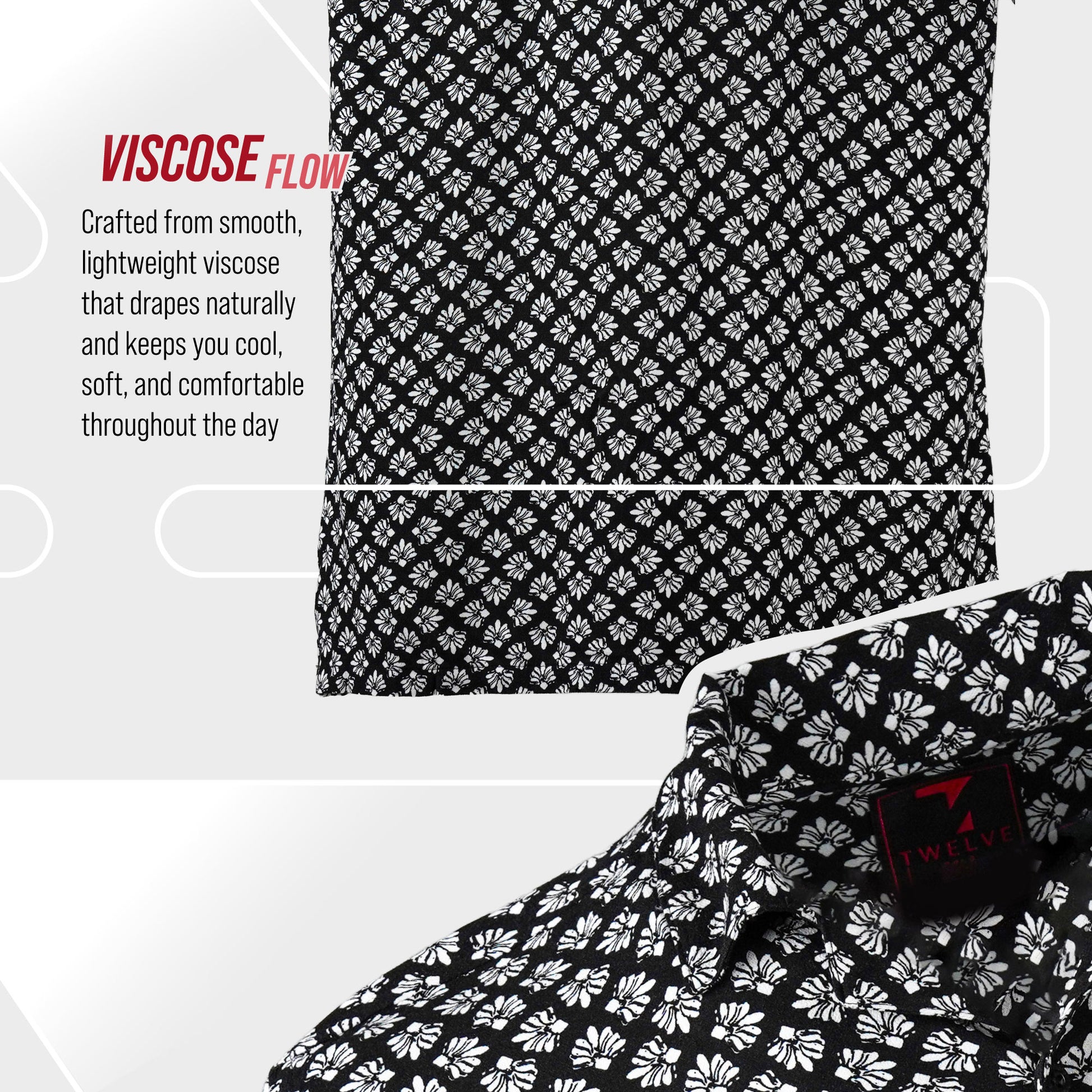 Crafted from smooth viscose fabric, this casual shirt features an all-over black pattern for a bold, vibrant look. Ideal for relaxed gatherings or weekend outings.