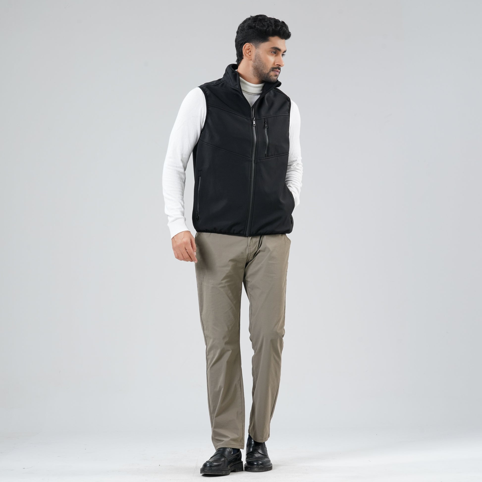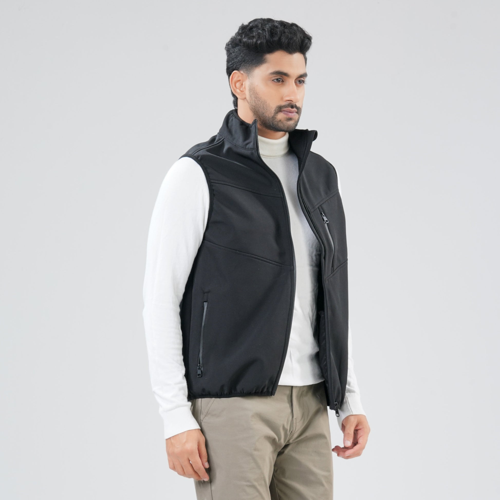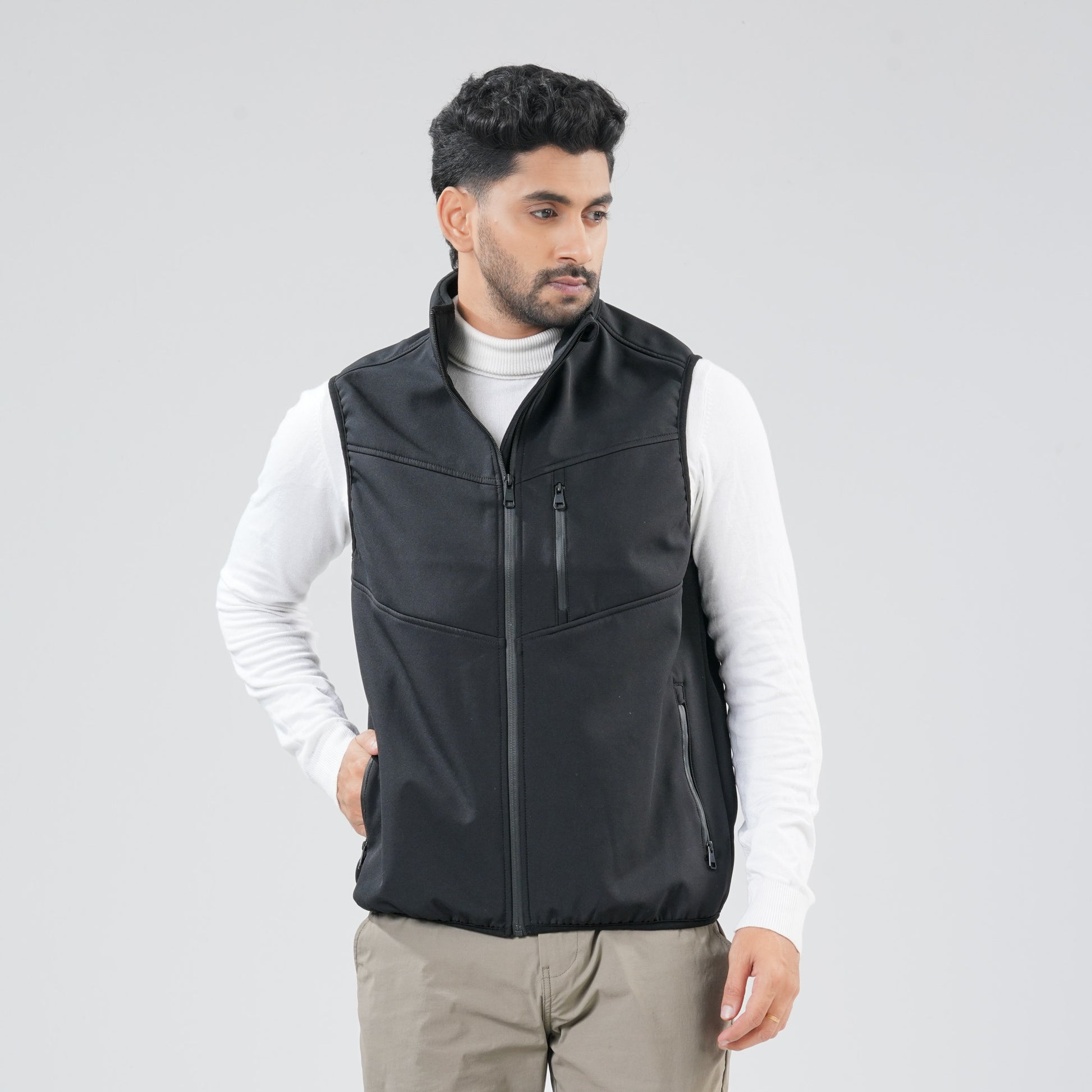 Keep his winter style sleek and functional with this menβs black husky jacket. Designed in a regular fit, it features cut-and-sew detailing on the front body and a sleeveless design for easy layering. Made from durable polyester with a solid lining, it provides comfort and warmth without added bulk perfect for everyday casual wear.