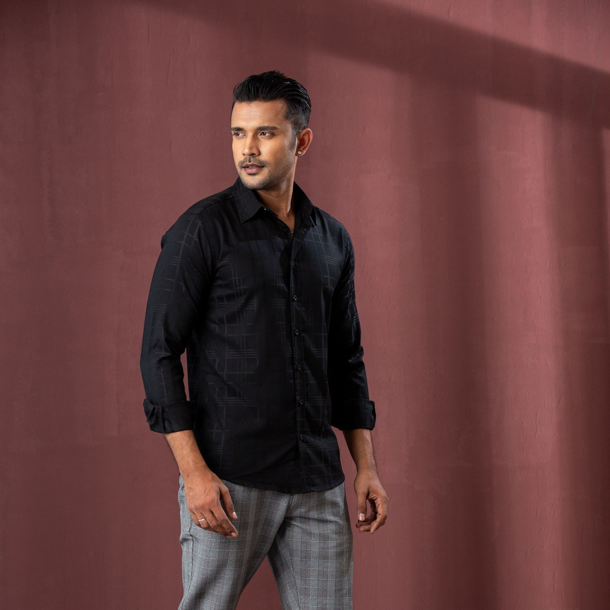 Mens L/S Shirt-Black Check