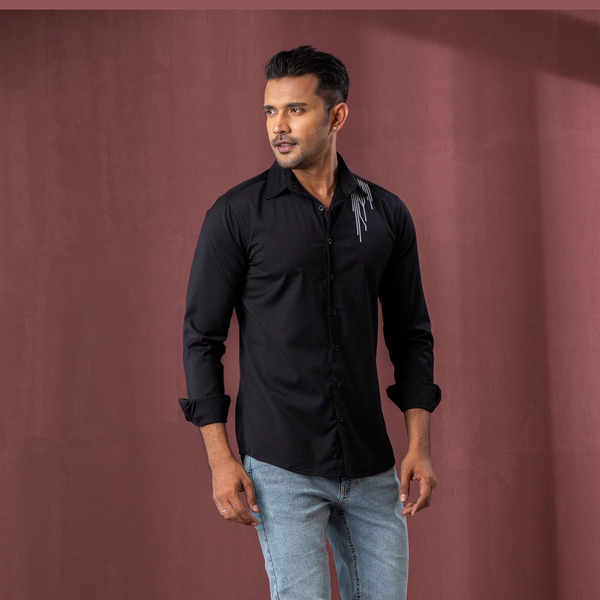 Mens Black Embroidered Shirt