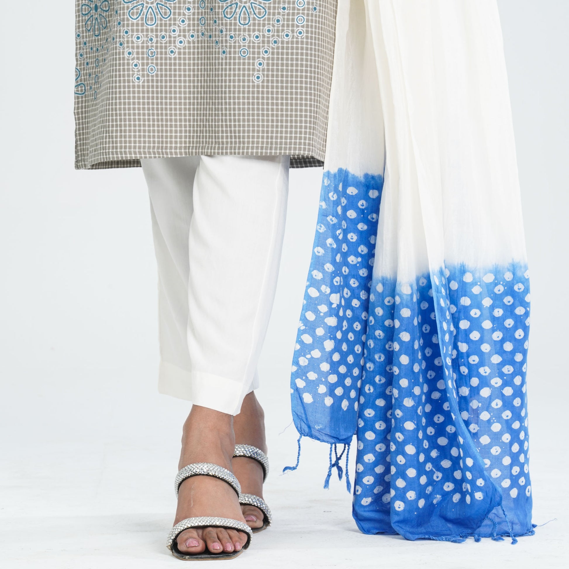 Material: Cotton kameez, pant & half silk dupatta.
