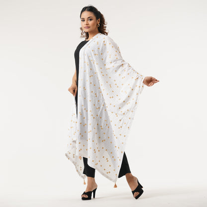 Elevate your traditional look with this elegant white ethnic orna, crafted from a soft blended fabric for a comfortable drape. Its lightweight texture makes it perfect for layering over any ethnic outfit, adding a graceful touch to your ensemble. Versatile and timeless, this orna is a must-have for any festive or casual occasion.