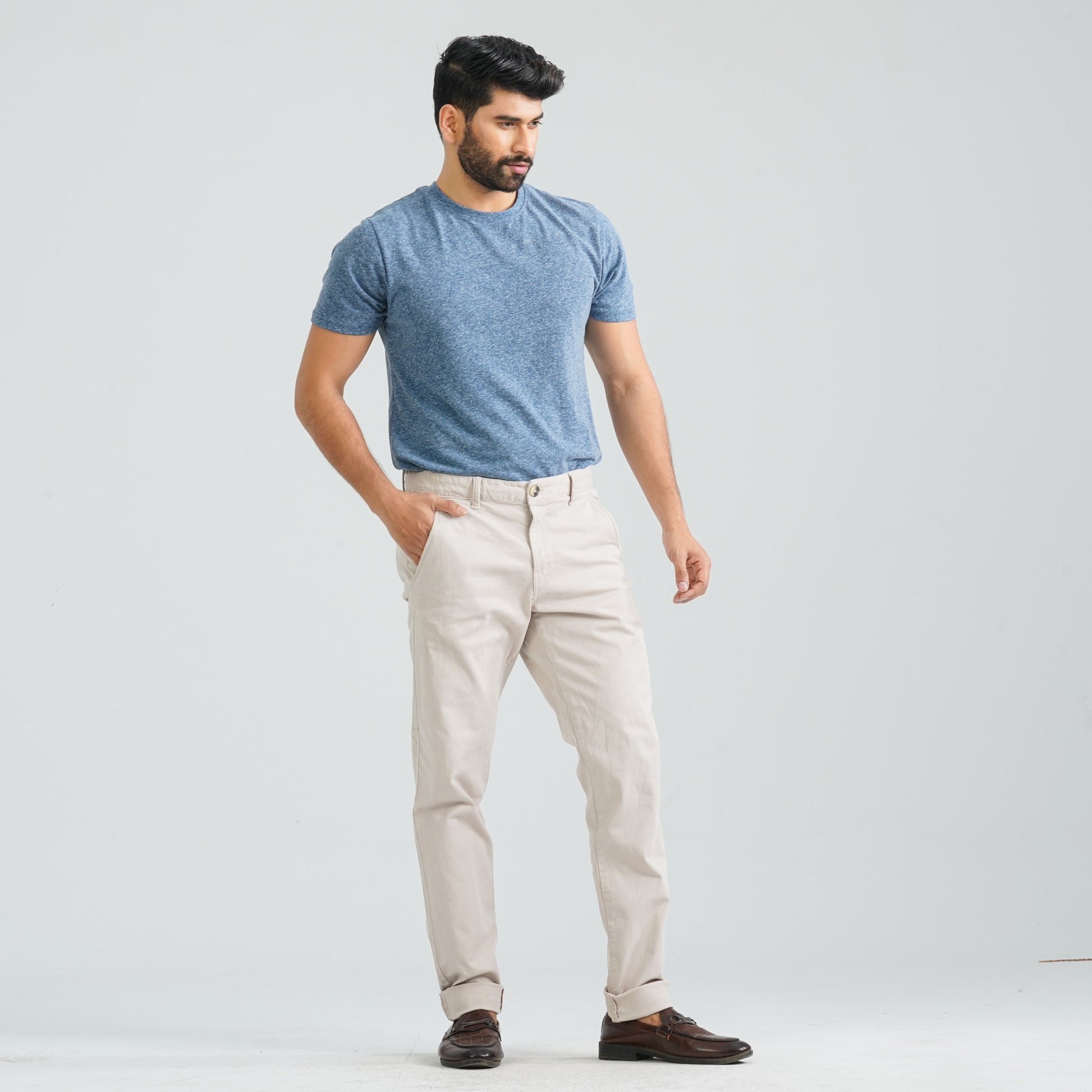 Upgrade your smart-casual wardrobe with this men’s navy chino pant crafted from cotton and elastane for breathable comfort with added stretch. Designed in a regular fit, it ensures ease of movement and a clean silhouette. The versatile navy shade makes it perfect for office wear and casual outings. Pair effortlessly with shirts, polos, or tees for a polished everyday look.
