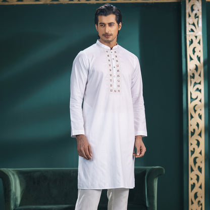 Mens White Embroidery Panjabi