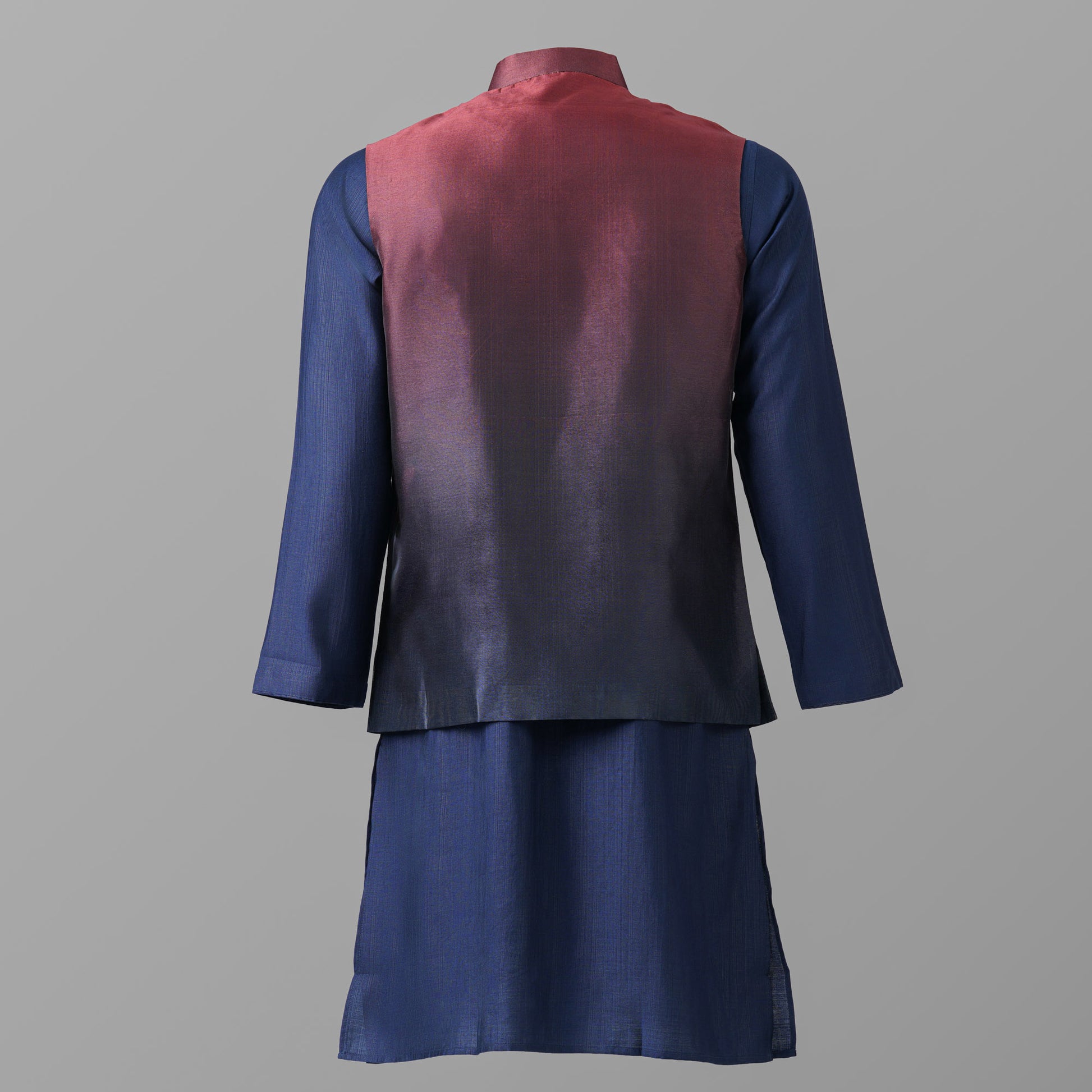 Mens two piece set featuring a navy blue panjabi paired with a vest in a navy and wine color combination. Crafted from soft blended fabric for comfort and durability, the vest is detailed with elegant embroidery work that enhances its refined traditional look. A perfect choice for festive occasions, cultural events, or casual ethnic wear.