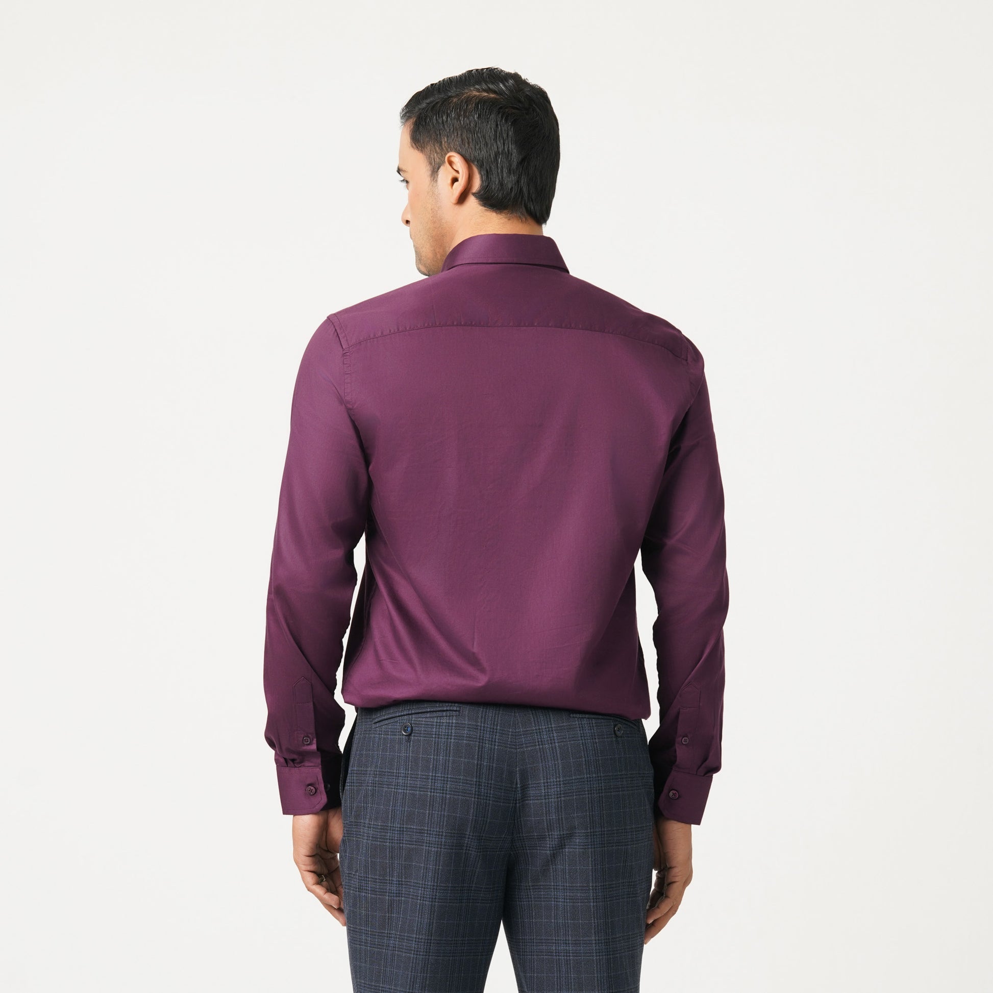 This men’s purple formal shirt features a regular fit with full sleeves and a classic point spread collar. Designed with square pockets and crafted from imported satin lycra, it offers a unique sheen and lustre for a polished, professional look. Perfect for office, formal events, and smart occasions.