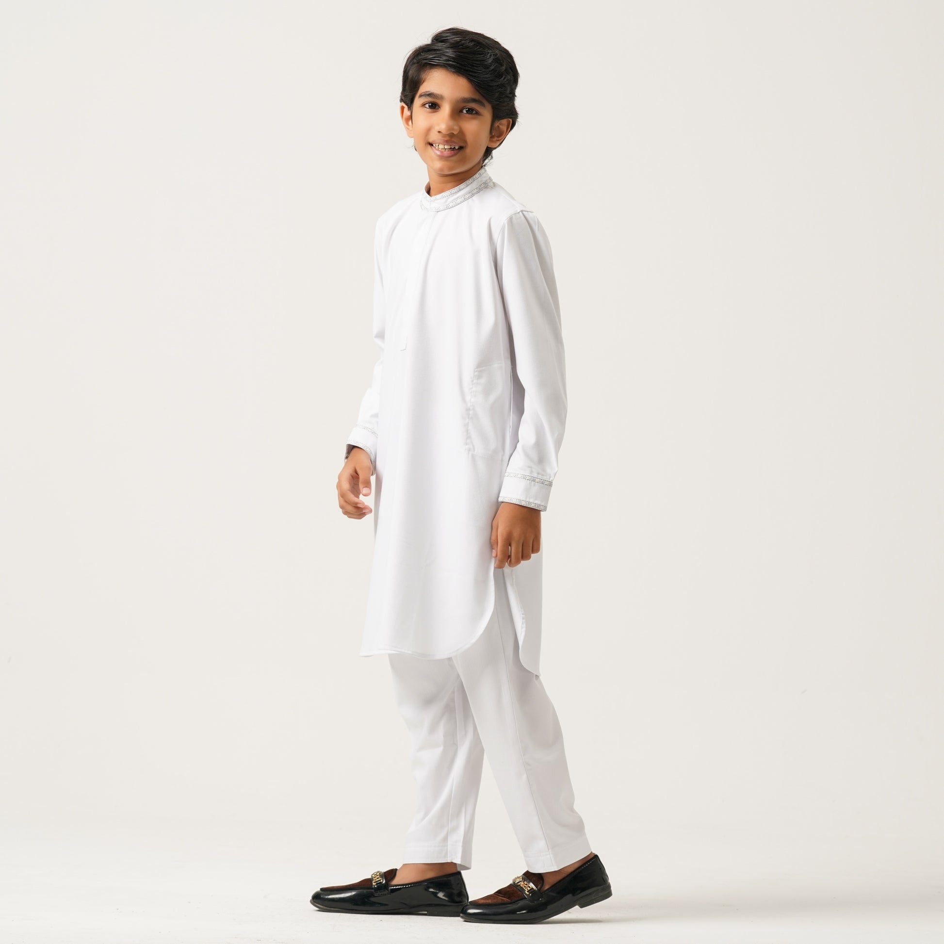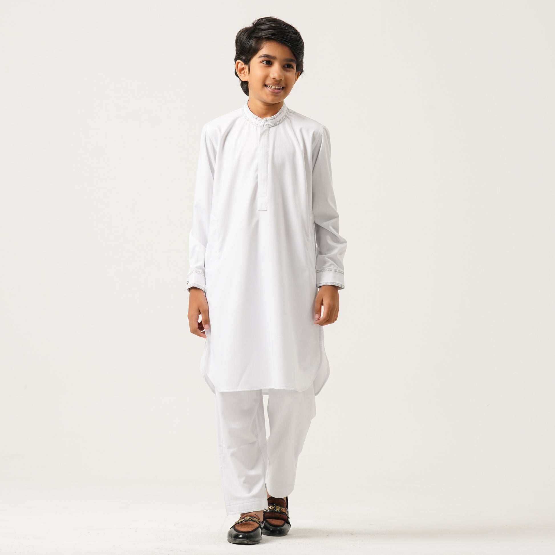 Premium boys Kabli crafted from high-quality bamboo silk. Features elegant embroidery work that adds a luxurious touch. Soft, smooth fabric ensures comfort for festive and special occasions.