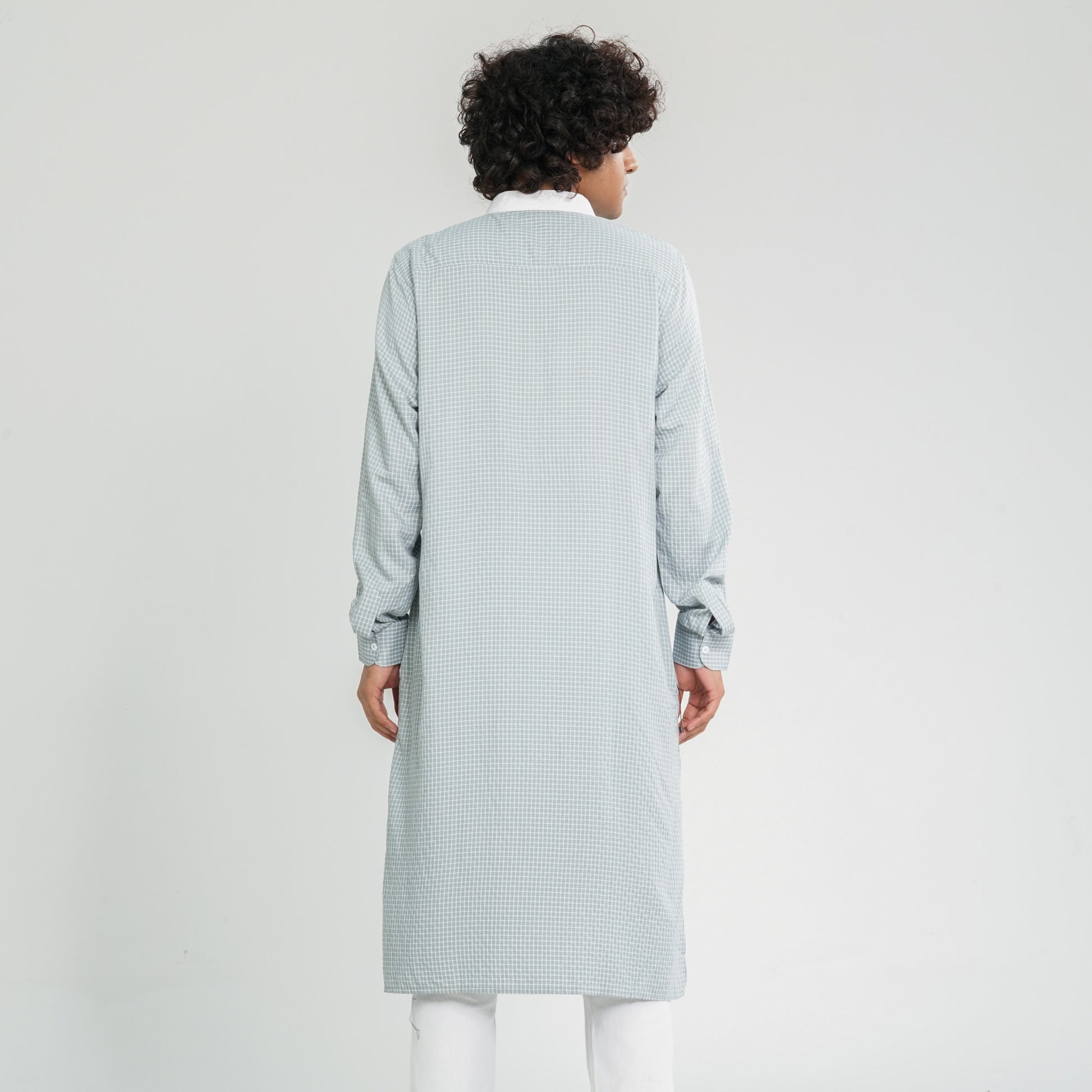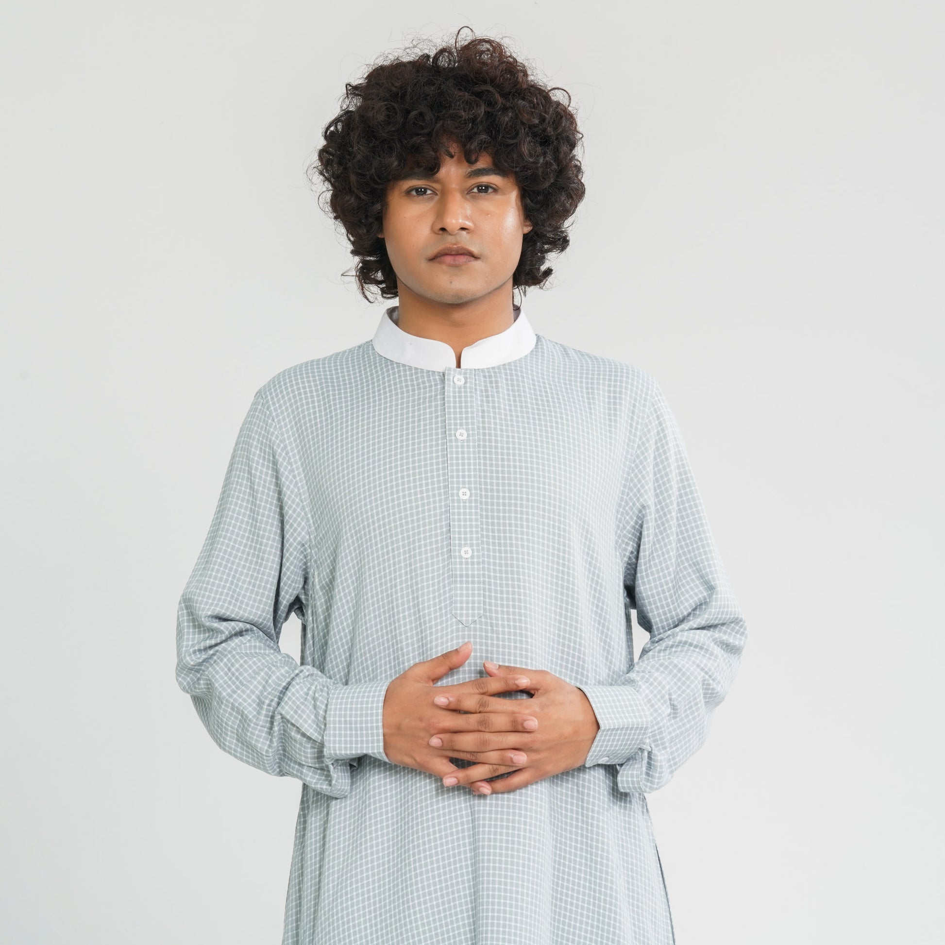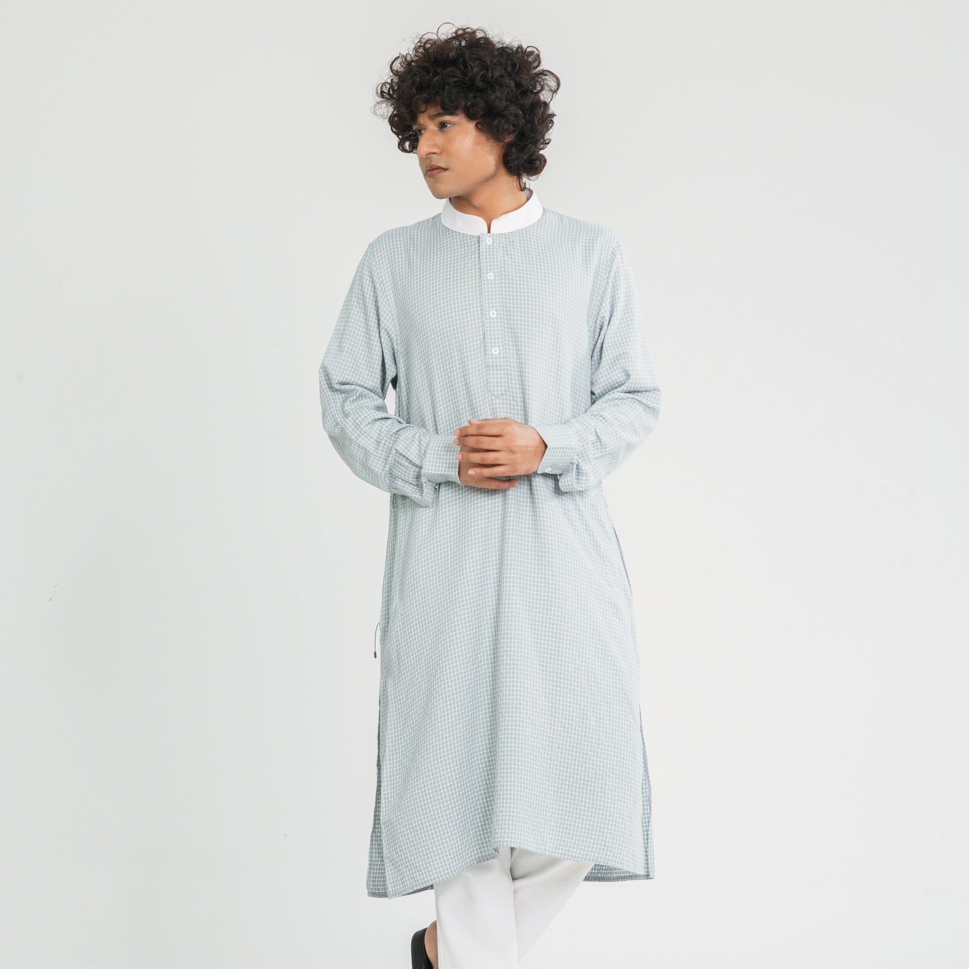 Made from soft, breathable cotton, this Panjabi features a classic check fabric enhanced with subtle contrast detailing. Designed for a harmonious and balanced look, perfect for casual gatherings or semi-formal ethnic occasions. The stone pastel shade adds a modern, understated elegance.