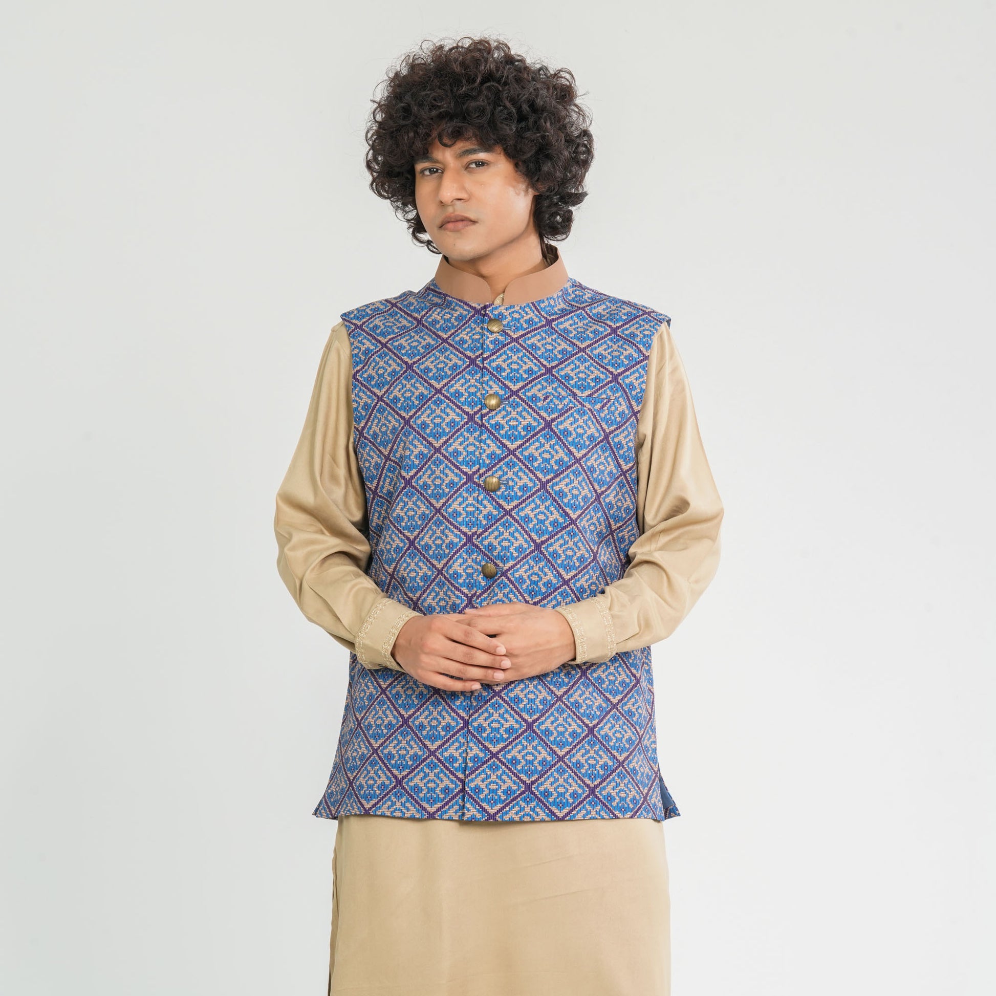 Crafted from soft blended cotton, this Koti features a Timurid architecture-inspired digital print that exudes a royal and historic vibe. Designed for a bold, maximal look with ethnic charm. The teal color enhances its regal appeal, making it perfect for festive occasions and statement ethnic styling.