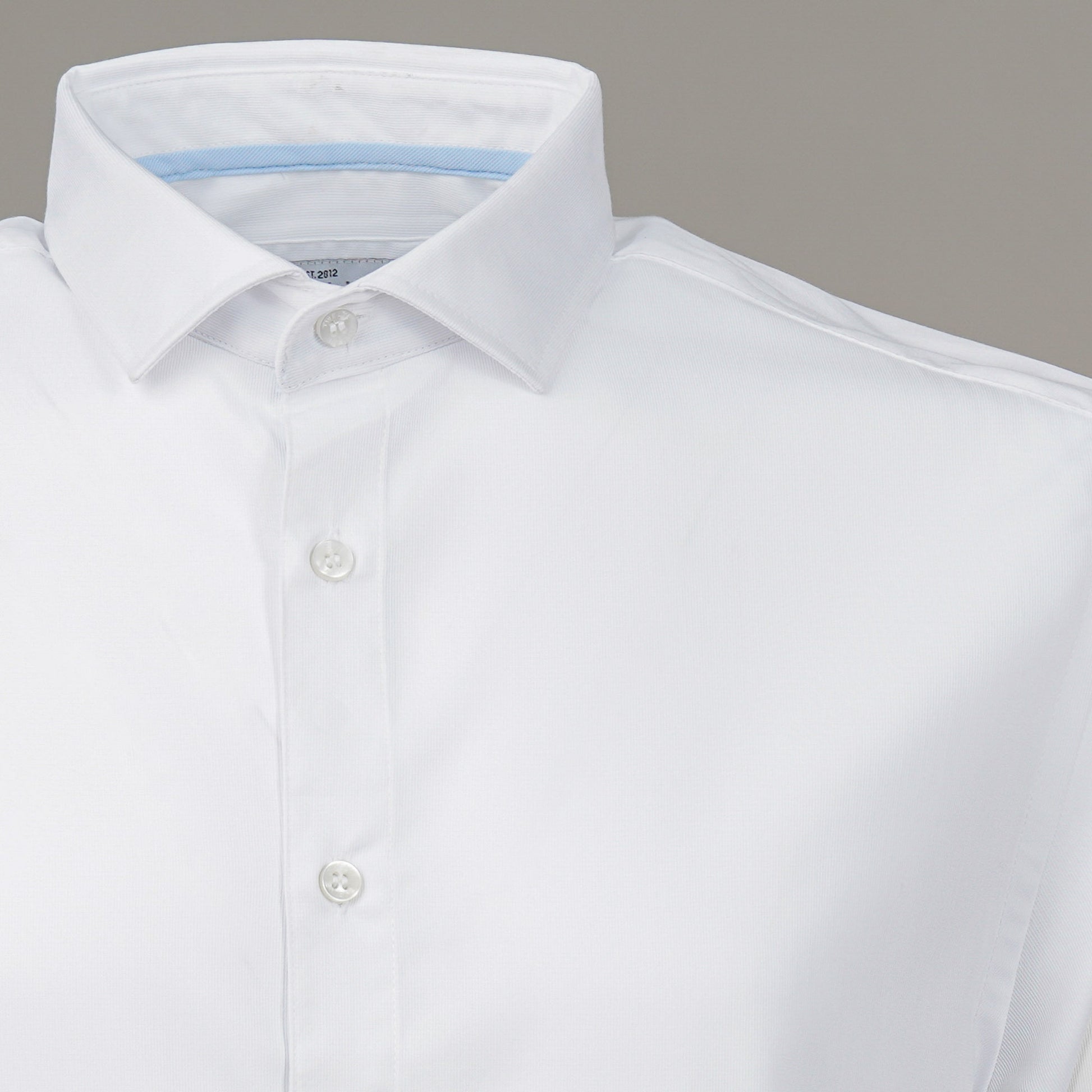 This mens white formal shirt offers understated elegance with its cotton blended fabric. Designed, it combines comfort and sophistication, making it ideal for office wear or formal occasions. A versatile addition to any wardrobe.