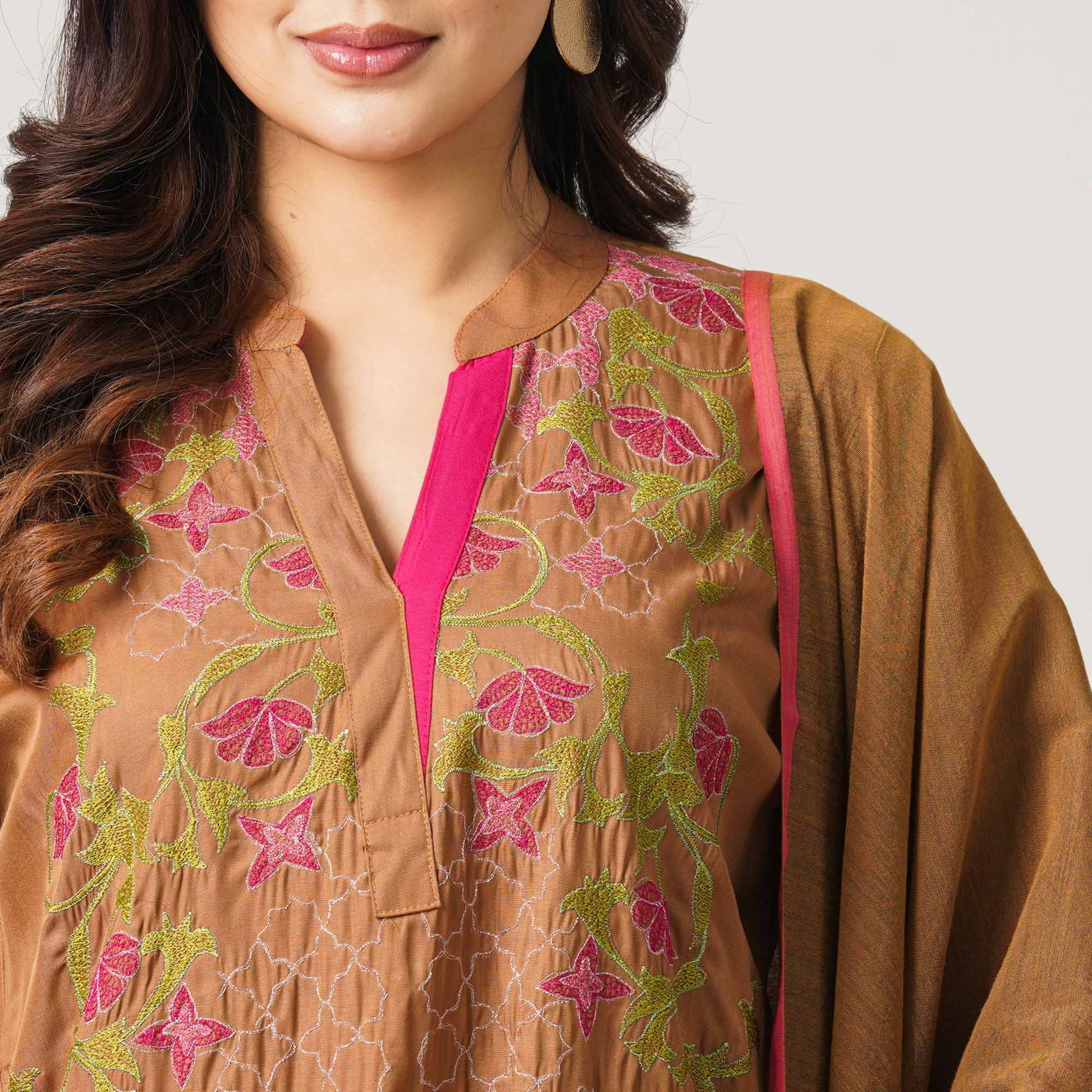 This elegant three piece outfit features a straight-cut kameez paired with a comfortable straight-fit pant and a refined half-silk dupatta. Crafted with a viscose kameez and pants, the design is elevated with tasteful screen printing and delicate embroidery. The modern silhouette ensures ease of movement while maintaining a polished look. Ideal for festive, casual, and semi-formal occasions.