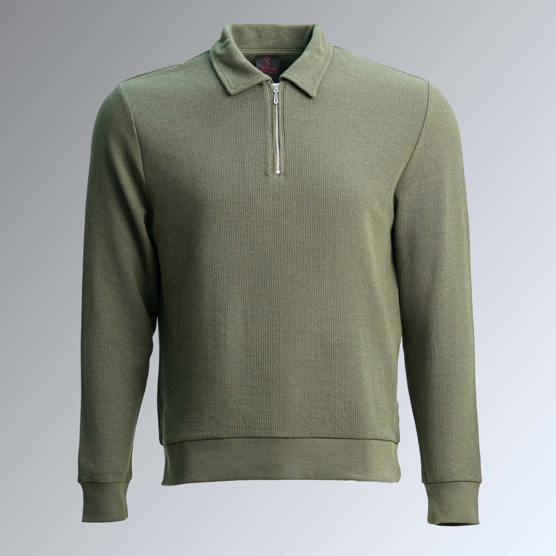 This men’s olive full-sleeve polo t-shirt is crafted from a waffle-textured fabric made of modal, cotton, and spandex for superior comfort and stretch. Designed with a stylish zipper fastening, it adds a modern twist to a classic polo look. The 270–290 GSM fabric ensures durability while remaining breathable, making it ideal for all-day wear. Perfect for casual outings or smart-casual styling.