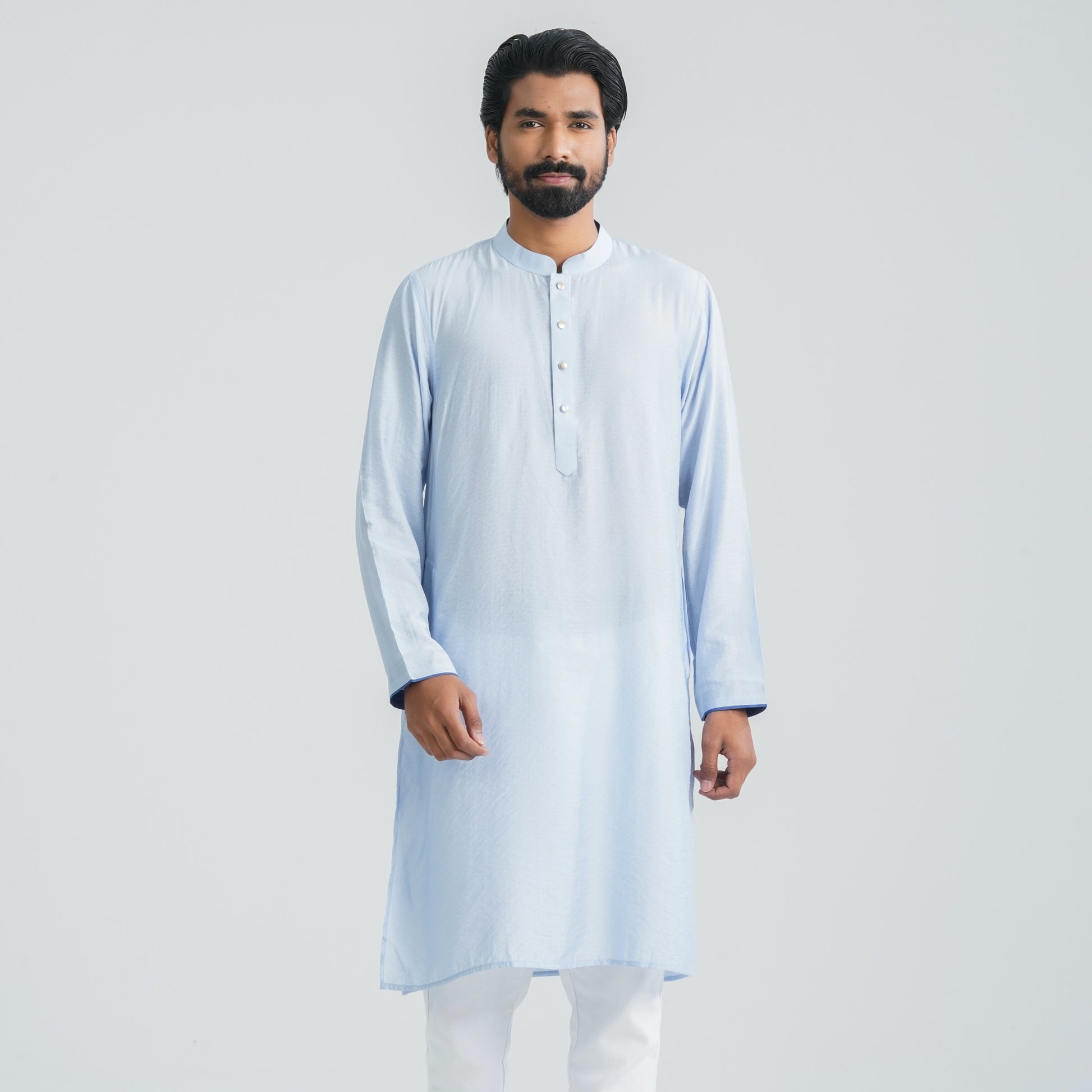 This classic mens panjabi is crafted from soft blended cotton fabric for all-day comfort.