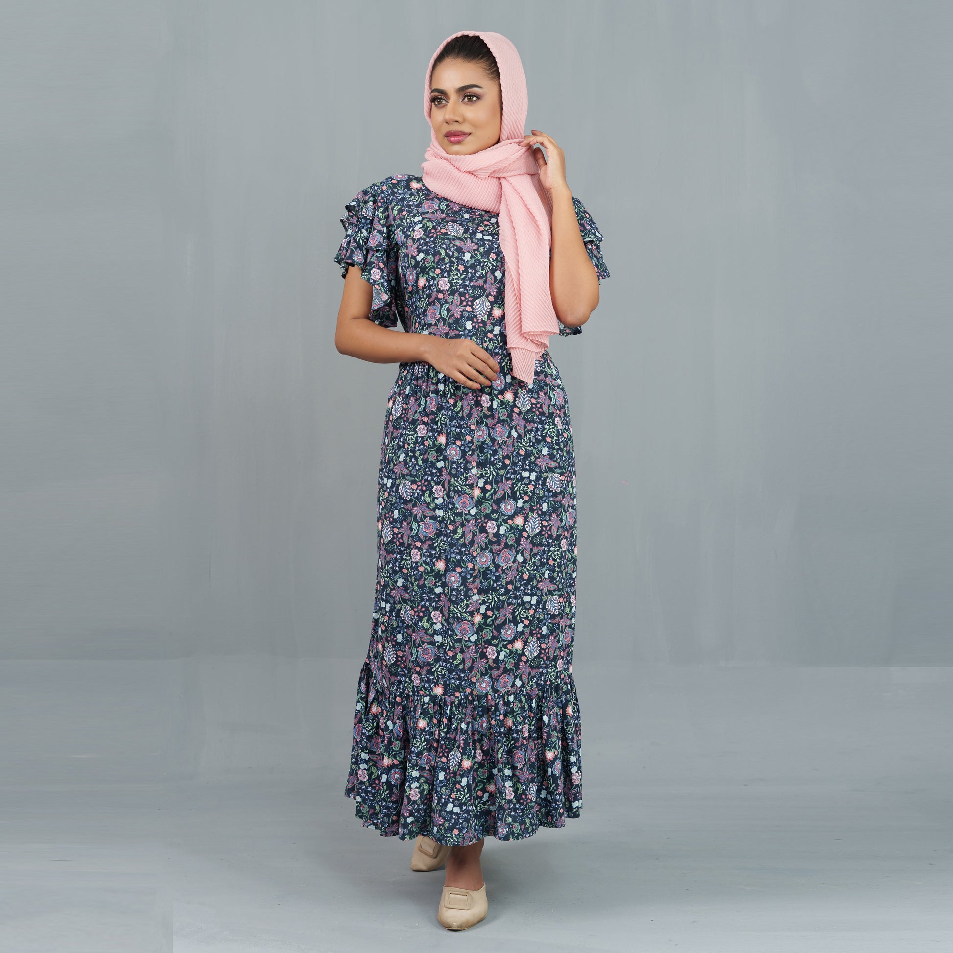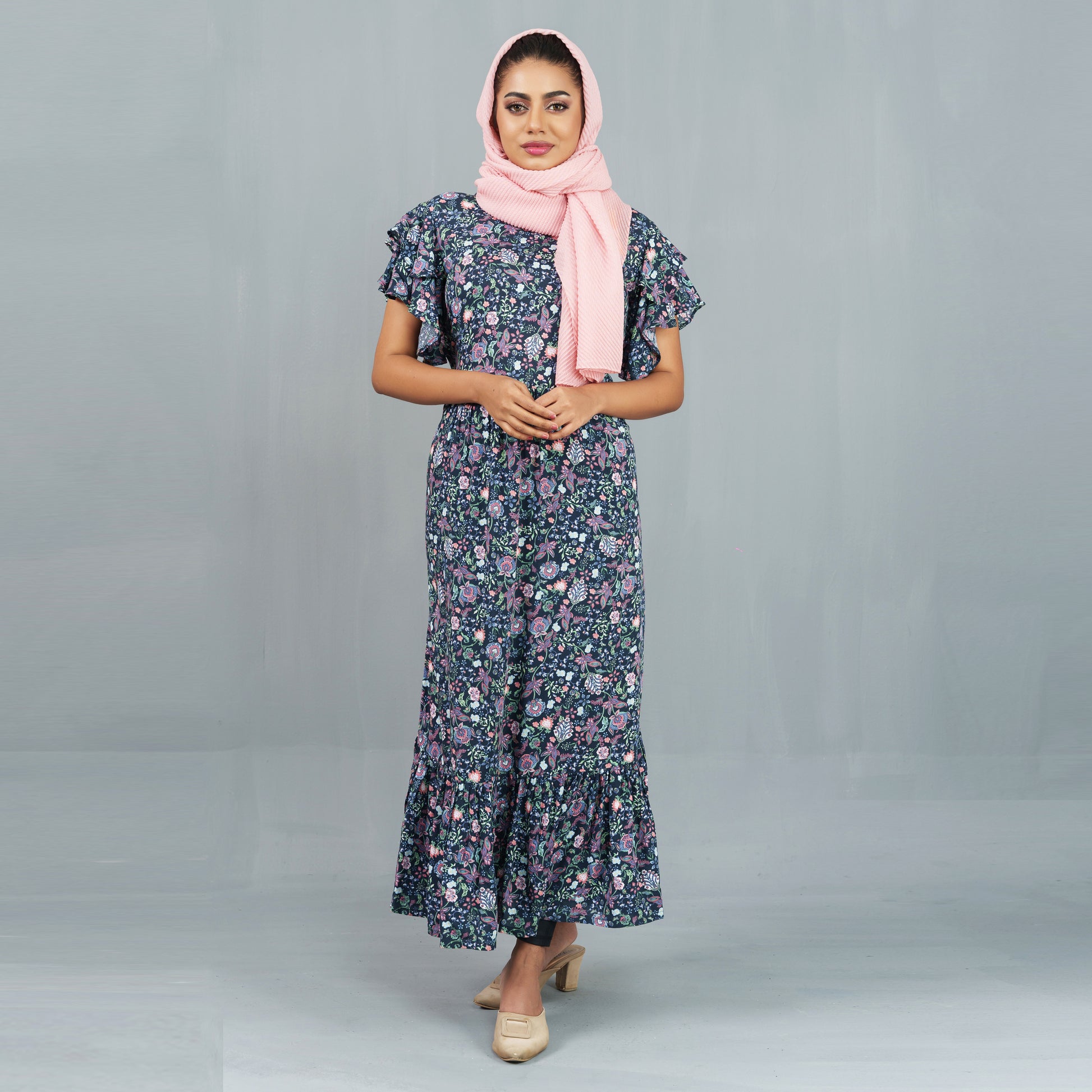 This Dress Is Composed Of A Delicate And Lightweight Viscose Fabric, Available In A Beautiful Combination Of Blue And Pink. The Unique Fabric Is Designed To Offer Comfort And Flexibility In Movement Throughout The Day.