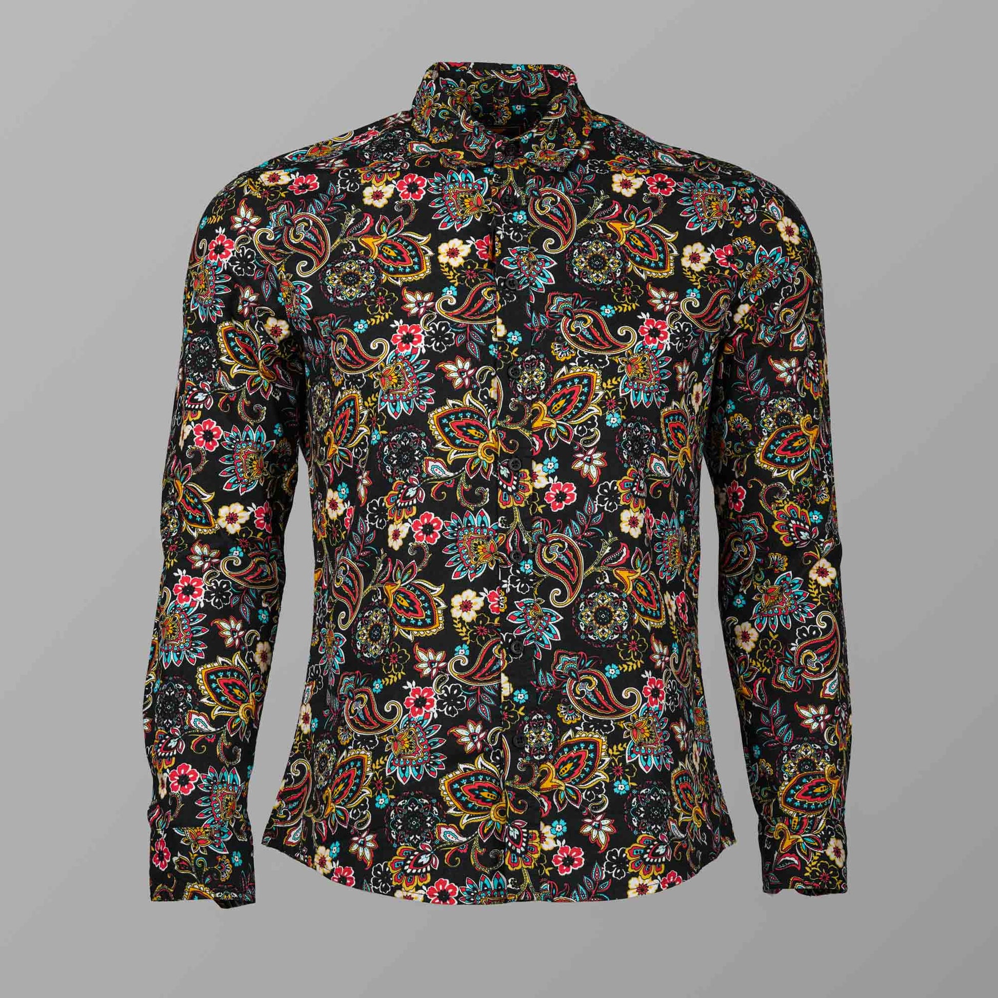 Step out in style with our men's black long-sleeve shirt. Made from 100% cotton, this shirt is incredibly soft and breathable, keeping you comfortable all day. The unique black and yellow print adds a stylish touch, making it a great choice for casual hangouts.
