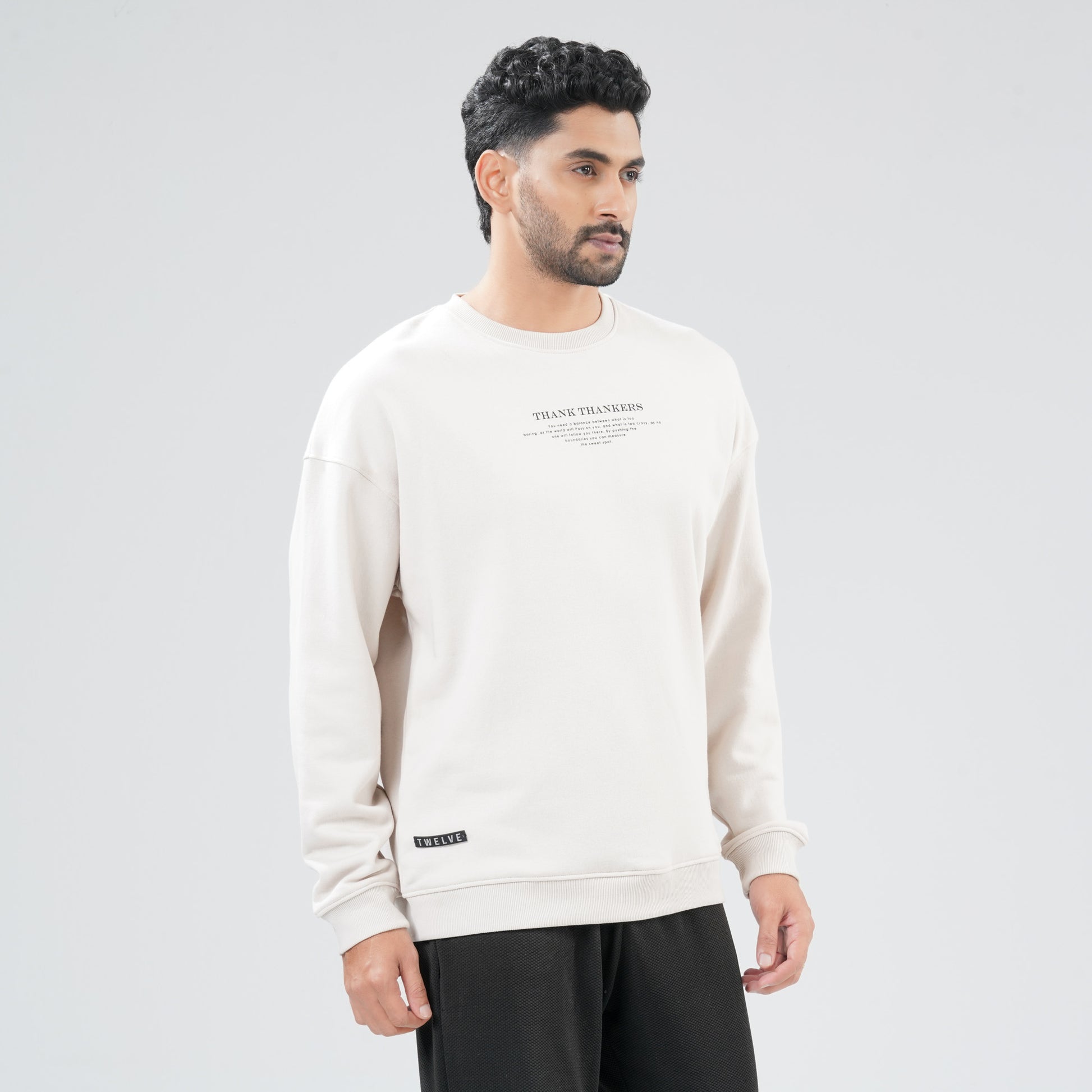 Upgrade casual winter style with this mens light beige oversized sweatshirt, crafted from a soft blend of 60% cotton and 40% polyester fleece (340 GSM) for warmth and comfort. Designed with plastisol prints on the front and back, it features ribbed detailing at the neck, waist, and cuffs. Perfect for cozy, relaxed winter wear.