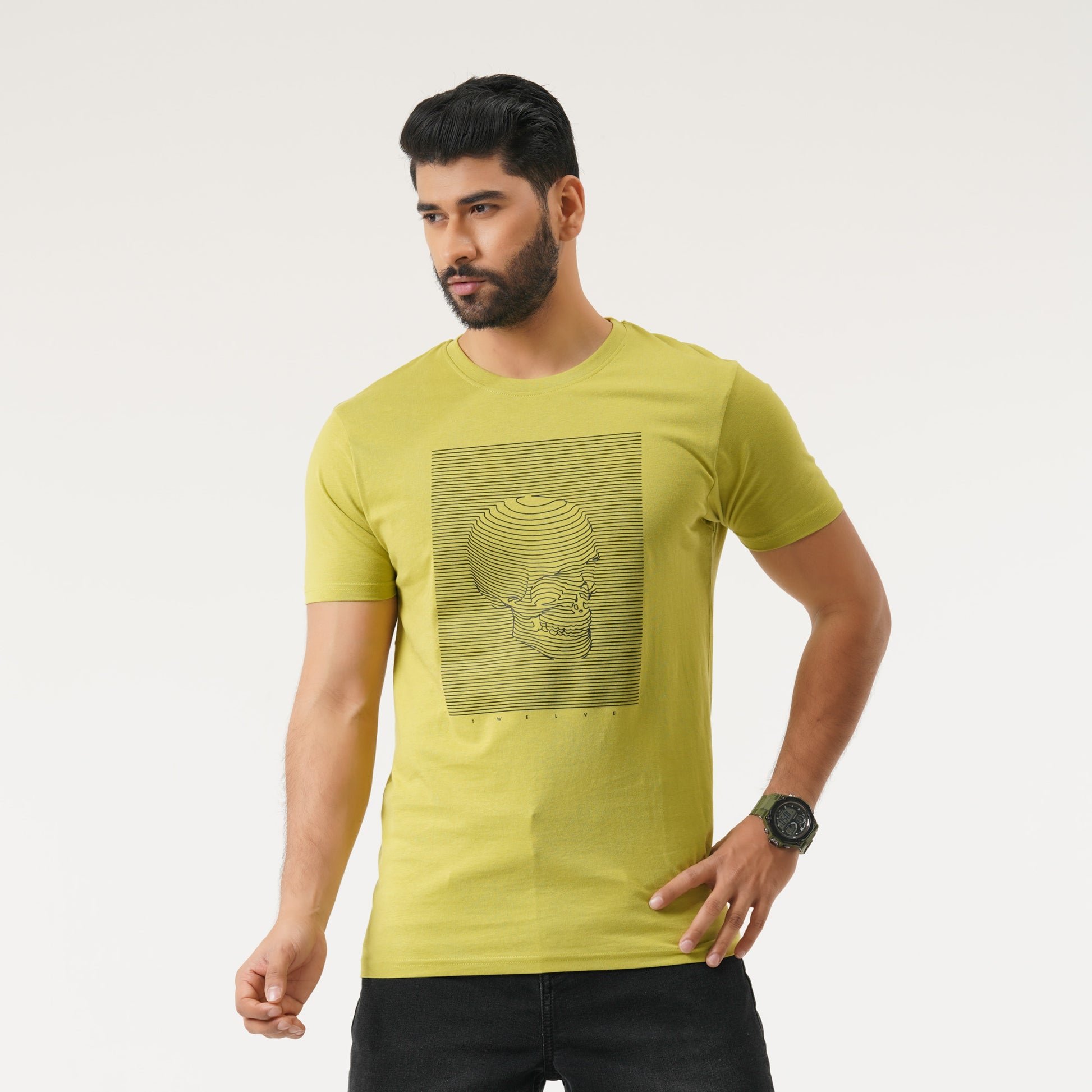 This lime-colored slim fit t-shirt offers a soft, comfortable hand feel and features a high-density print on the front for a modern, stylish look. Made from 100% cotton, it provides breathability and a sleek fit, perfect for casual wear with a trendy edge.